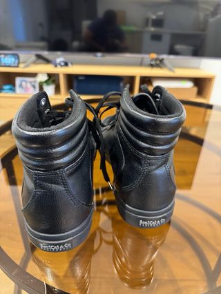Zapatillas altas de estilo clásico. - Diseño bicolor. - Cordones negros. - Suela blanca.