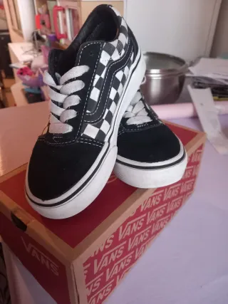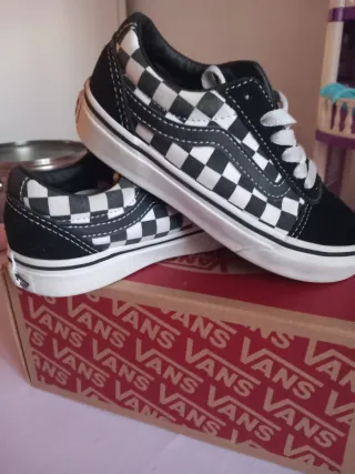Clásicos tenis Vans con el icónico diseño checkerboard. Número 29 - Parte superior de gamuza y lona. - Patrón de cuadros blanco y negro. - Suela de goma vulcanizada.