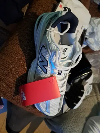 Tenis de la marca New Balance en tonos azul y blanco. - Diseño deportivo. - Cordones blancos. - Detalle de logo en el lateral.