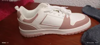 Tenis de moda en colores blanco y rosa, completamente nuevos. - Diseño moderno y versátil. - Cierre con cordones blancos.