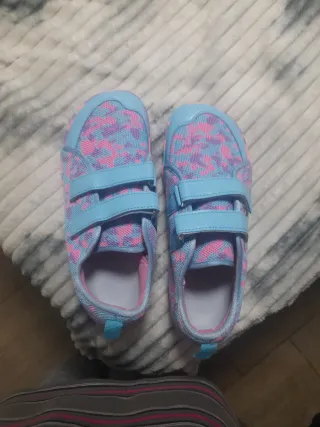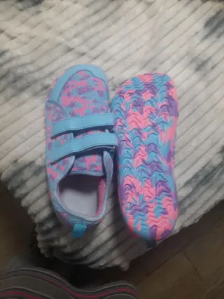Tenis con un diseño moderno y llamativo. - Cierre de velcro para un ajuste fácil. - Suela flexible para mayor comodidad. - Tejido transpirable. Visita mi perfil que tengo cositas varias y a buen precio