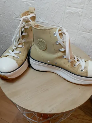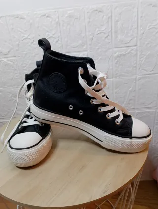 Zapatillas altas Converse con suela de plataforma. - Diseño clásico en negro y blanco. - Cordones blancos. - Detalle de estrella en el lateral.