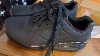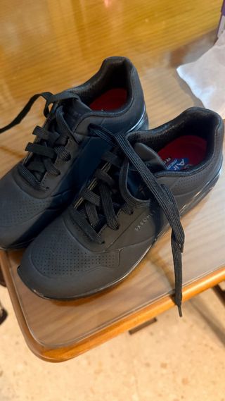 Tenis Skechers negros talla 39 casi nuevos Descripción: Vendo estos tenis Skechers negros en talla 39. Están prácticamente nuevos, solo usados una vez. Los vendo porque ya no los necesito y no puedo cambiarlos al haber tirado el ticket y la caja. Son muy cómodos, resistentes y con suela gruesa ideal para caminar o uso diario. Estado: 9.5/10 Precio en tienda: 95€ Entrega en mano o envío por Wallapop. ¡Aprovecha!