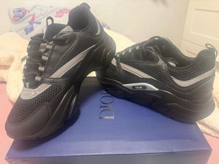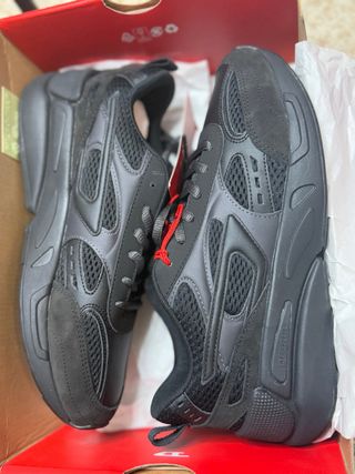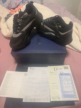 Tenis de la marca Dior en color negro con detalles plateados. - Diseño moderno y deportivo. - Materiales de alta calidad.