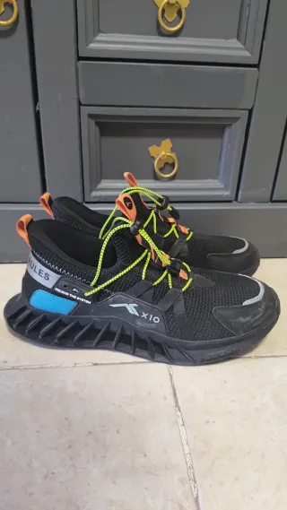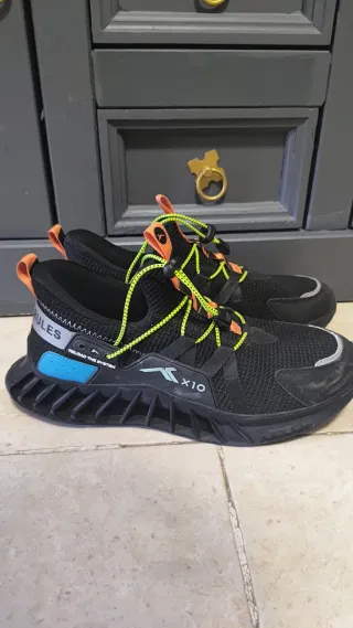 Zapatillas deportivas con un diseño moderno y llamativo. - Parte superior de malla transpirable. - Suela de goma para mayor agarre. - Cierre con cordones para un ajuste seguro.