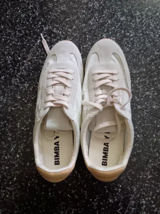 Zapatillas de la marca Bimba y Lola en color beige y blanco. Son un modelo nuevo, sin estrenar. - Cierre con cordones. - Detalle de logo en la plantilla. - Suela de goma.
