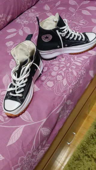 Zapatillas Converse Run Star Hike de caña alta, color negro y suela blanca. - Solo dos usos, prácticamente nuevas. - Diseño moderno y urbano. - Cordones blancos. - Logo de Converse en el lateral.
