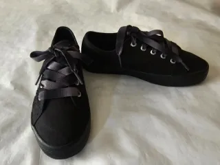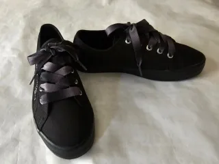 Zapatillas de estilo casual en color negro. - Cierre con cordones de cinta. - Detalle de ojales plateados. - Suela de goma. - Diseño de corte bajo.