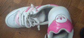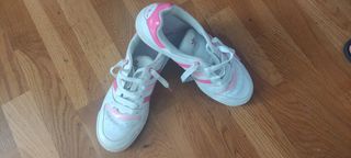 Zapatillas deporte de polipiel rosa. Están nuevas, pero las he usado 2 días en un viaje y las vendo porque yo no soy de zapatillas. Las he limpiado bien pero al mojarlas se ha quedado la parte almohadillada del talón un poco beig.