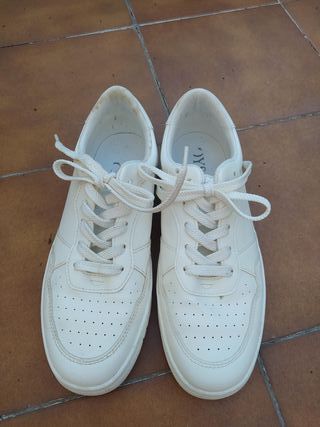 Zapatillas de deporte de polipiel blancas. Están nuevas, pero han sido usadas 2 días en un viaje, y yo no soy de zapatillas. Están recién lavadas.