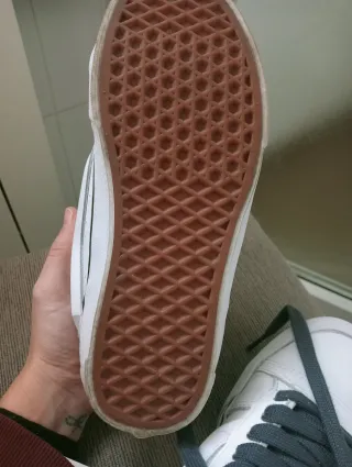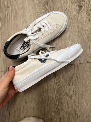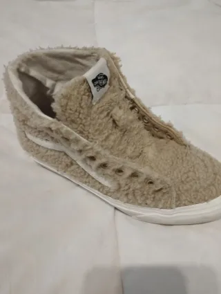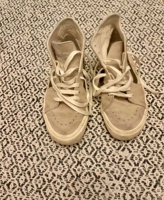 Zapatillas de la marca Vans en tonos beige y blanco. - Diseño de ante. - Suela de goma blanca. - Cordones gruesos. Usadas una vez, completamente nuevas, no me convencen y no las utilizo de ahí la venta