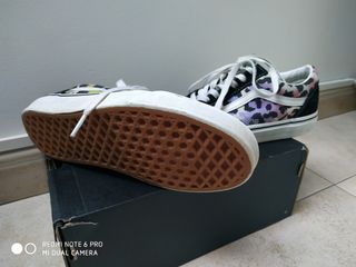 Zapatillas deportivas Vans con un diseño moderno y llamativo. - Combinación de colores beige y detalles multicolor. - Estilo urbano y casual.