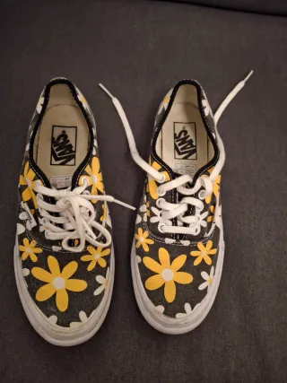 Talla 38. Las vendo porque me quedan pequeñas. Las he utilizado solamente en 2 ocasiones. Motivos florales, quedan muy chulas puestas. Tipo Vans pero son marca Merry Scott. Bambas. Verano. Motivos florales. Verano. Entretiempo.