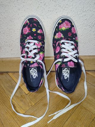 Zapatillas negras con estampado floral para mujer, marca Vans, talla 36. Muy poco uso.