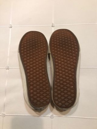 Zapatillas deportivas Vans con suela de goma. - Diseño con suela de goma antideslizante. - Combinación de colores beige y marrón. Solo una puesta ,me quedaron grandes .y me costaría muchisimo mas caras del precio q las vendo .