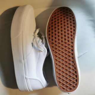 Vans blancas de tela, están prácticamente nuevas. Sin apenas uso. Al tenerlas guardadas el blanco de la tela se ha amarilleado un poco. Pero están nuevas. Precio negociable .
