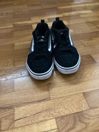 Vendo zapatillas Vans negras para niño. Están en buen estado y son ideales para el día a día. - Son de lona. - Tienen cordones. - Son de talla de niño.