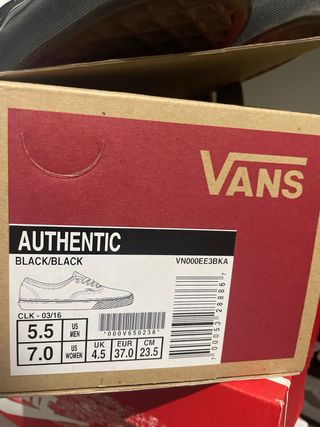 Vendo zapatillas Vans negras, talla 38. Están en muy buen estado. - Son un modelo cómodo y ligero. - Ideales para el uso diario. sin estrenar