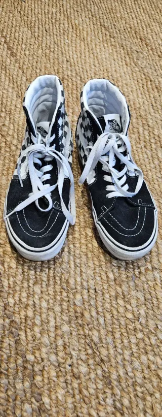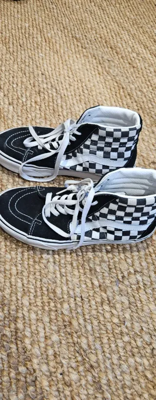 Vendo mis Vans Sk8-Hi. Son unas zapatillas altas, de estilo clásico, con el característico estampado a cuadros blancos y negros. - Están en buen estado, con señales normales de uso. - Ideales para el día a día. - Son un 40,5 pero casi que 41