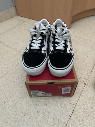 Zapatillas Vans Old Skool con plataforma y estampado de cuadros. - Diseño icónico de Vans. - Plataforma para un estilo moderno. - Combinación de negro y blanco. (dos usos, las vendo porque me quedan grandes)