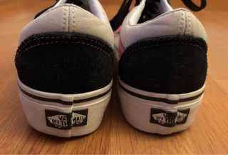 Zapatillas de estilo clásico de la marca Vans. - Diseño en color negro con detalles blancos. - Material de ante y lona. -Plataforma. Están muy bien conservadas. Usadas unas 3/4 veces.