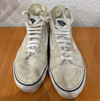 Zapatillas Vans Sk8-Hi de corte alto en tonos beige y blanco. Un clásico reinventado. Nuevas a estrenar! - Diseño de caña alta. - Combinación de ante y lona. - Cordones blancos. - Suela de goma vulcanizada.