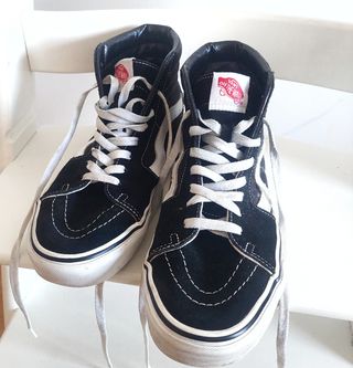 Zapatillas Vans altas de color negro. Están sin desperfectos ni rotas. Muy cómodas. Poco uso. Como se aprecia. - Modelo: Sk8-Hi - Material: Lona