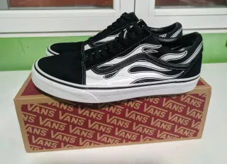 Vendo un par de zapatillas Vans Old Skool con diseño de llamas. Están en muy buen estado y son ideales para cualquier ocasión. Han sido usadas 4 veces contadas porque me quedan pequeñas. - Modelo Old Skool de Vans. - Diseño de llamas en los laterales. - Suela blanca. ESCUCHO OFERTAS SERIAS. TAMBIÉN ACEPTARÍA INTERCAMBIO POR UNAS NIKE AIRMAX 1 DE IGUAL ESTADO EN TALLA 44 / 44’5 / 45