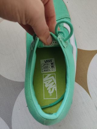 Vans en verde menta usadas durante una tarde. Tienen aún intacta la etiqueta interna.