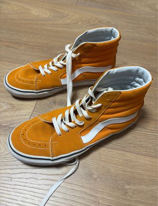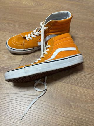 Zapatillas altas de la marca Vans, modelo Sk8-Hi. Poco uso - Color naranja vibrante con detalles en blanco. - Diseño clásico de caña alta.