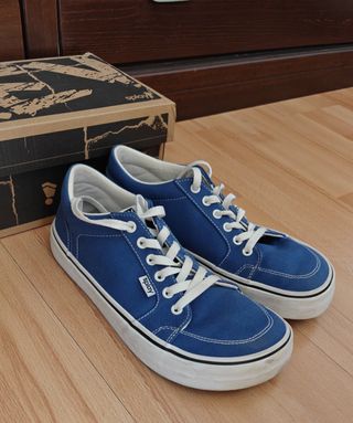Zapatillas Splay REV HT Canvas color San Juan (azul), talla 43 EU. Son zapatillas barefoot, muy similares a las Vans. Usadas un par de veces, mi pie no se hace a ellas. Incluye la caja original. Puestas en España, con envío e IVA, se va a más de 100€. #barefoot #splay #vans #azul #blue #zerodrop #widetoebox