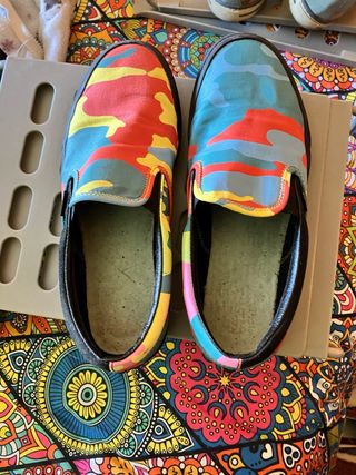 Zapatillas Vans estilo slip-on con un llamativo diseño de camuflaje multicolor. - Estampado de camuflaje con bloques de color. - Diseño sin cordones. - Detalle de banda elástica en los laterales. - No tiene plantilla interior al ser sustituida por plantilla podológica.