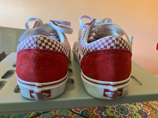 Zapatillas de la marca Vans en color rojo. - Están bastante usadas de ahí su precio - Diseño clásico con la franja lateral. - Cordones para un ajuste seguro. - Suela de goma. - Interior con estampado a cuadros.