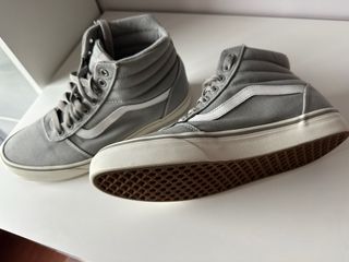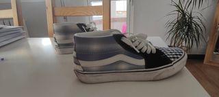 Zapatillas altas Vans Ward Stripe en color gris. Un clásico de la marca compradas en EEUU hace años y puestas muy pocas veces como podéis observar en las fotos. Están muy bien cuidadas - Diseño de caña alta. - Raya lateral característica de Vans. - Cierre con cordones.