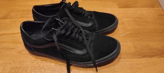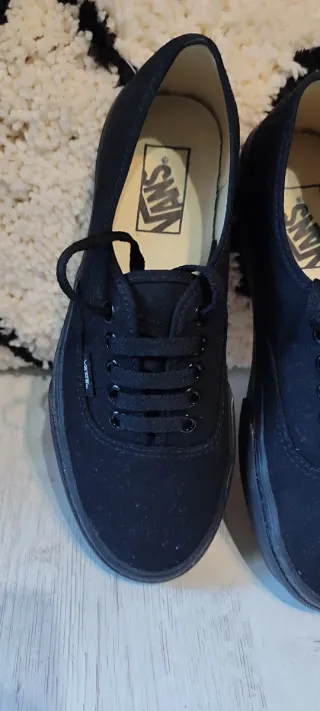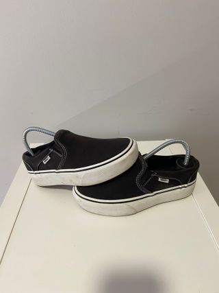 Vendo un par de zapatillas Vans negras. Son de ante y están en muy buen estado. - Ideales para el uso diario. - Cómodas y estilosas. - Talla (a determinar según la imagen)