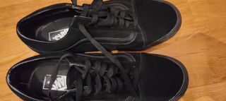 Zapatillas Vans Old Skool en color negro. Están usadas, pero en buen estado. Talla 39 - Son de lona. - Tienen cordones de color gris claro. - Ideales para el uso diario.