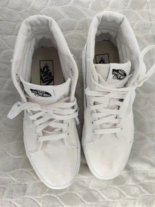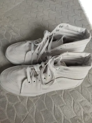 Zapatillas altas de la marca Vans en tono blanco. En perfecto estado, casi sin uso. - Diseño de caña alta. - Raya lateral característica de la marca.