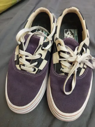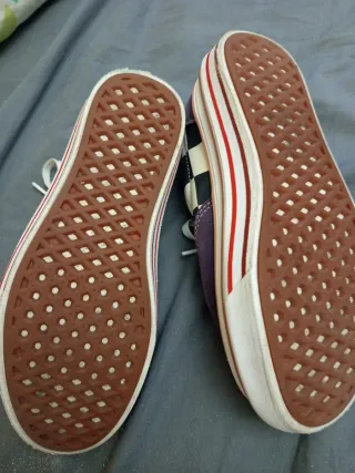 Zapatillas Vans de mujer usadas, pero bien conservadas, como se aprecia en las fotos, suelas intactas, etc. Lo único que tiene en la parte trasera un leve desgaste, como se aprecia en la foto. Por lo demás, están perfectamente.