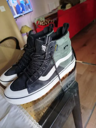 ZapatillasVans media caña. Tienen tratamiento contra el agua y forro térmico para el invierno. Con muy poco uso, la suela está perfecta y agarra como el primer día. Tiene pequeñas marcas en lateral de la suela como se ven las fotos.