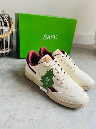 Zapatillas Saye modelo Vegan Garnet en talla 41. Con etiqueta. - Diseño en color blanco y detalles en burdeos. - Materiales veganos.