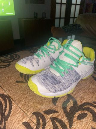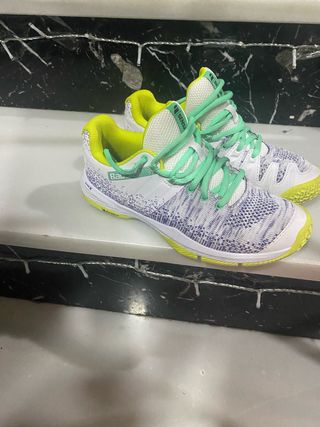 Zapatillas de pádel con un diseño moderno y llamativo. - Combinación de colores vibrantes. - Materiales transpirables para mayor comodidad.