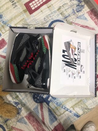 Zapatillas Jordan Spizike en perfecto estado. Un diseño icónico con detalles llamativos. - Combinación de materiales de alta calidad. - Cordones rojos que contrastan con el negro. - Suela con detalles en verde y rojo. Con su caja los dos Se aceptan cambios de iphone y se regala un iphone 8 Precio negociable solo con un cambio de iPhone 11 pro para arriba