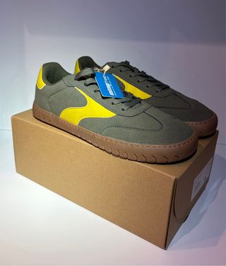 Zapatillas con un diseño moderno y llamativo. - Combinación de colores verde y amarillo. - Suela de goma marrón. - Detalle de logo en la lengüeta. A ESTRENAR !! MTNG Deportivas Hombre Free-Gym 84806