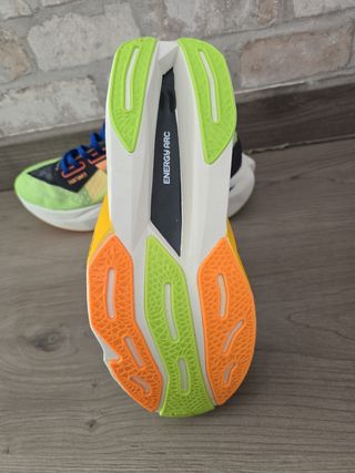 Zapatillas deportivas New Balance con un diseño llamativo y moderno. - Combinación de colores vibrantes. - Estilo deportivo y dinámico.