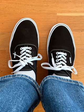 Zapatillas Vans negras compradas en Nueva York. Un clásico para tu día a día. - Diseño de lona. - Cordones blancos. - Suela de goma. Las he usado un par de veces pero no van conmigo la verdad, no son mi estilo.