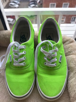 Zapatillas de lona Vans en llamativo color verde neón. Perfectas para un estilo casual y urbano. - Cierre con cordones blancos. - Suela de goma vulcanizada. - Detalle de logo en la lengüeta y el talón.