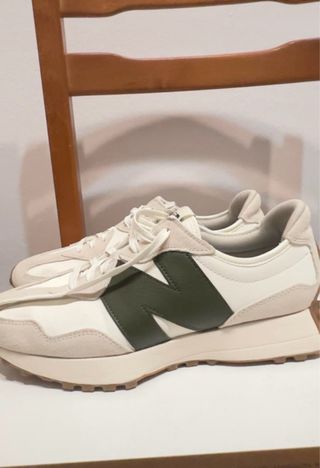 Zapatillas deportivas New Balance modelo 530 - Diseño en tonos beige con detalles en verde. - Talla EU 40