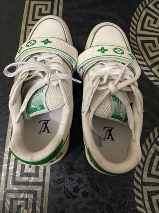 Zapatillas de diseño con detalles en verde. - Banda con monograma LV. - Cordones blancos. - Suela de goma.