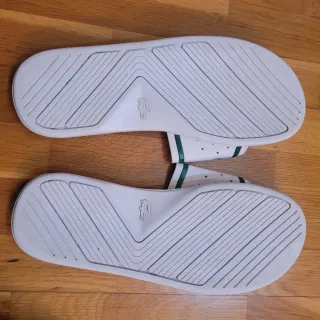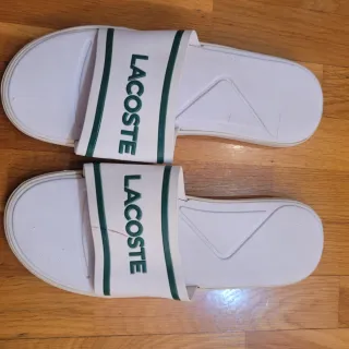 Chanclas de la marca Lacoste en color blanco con detalles en verde. - Diseño moderno y cómodo. - Tira ancha con logo.