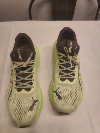 Zapatillas de running Puma en color verde y negro. - Diseño moderno y ligero. - Suela con tecnología Nitro para mayor amortiguación. NO NEGOCIABLE NO ENVÍO
